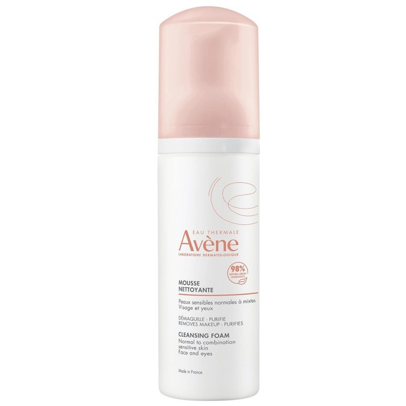Avène Mousse Nettoyante 150 ml démaquille, purifie et élimine les impuretés et excès de sébum. Peaux sensibles normales à mixtes. Cette mousse onctueuse et aérienne au parfum délicat démaquille, purifie et apaise la peau grâce à sa composition à base d'Eau thermale d'Avène et de glycérine, pour plus de confort. Sa formule sans savon intègre le minimum d'ingrédients à la juste dose pour garantir efficacité dermatologique et tolérance. La peau est nette, douce et confortable.