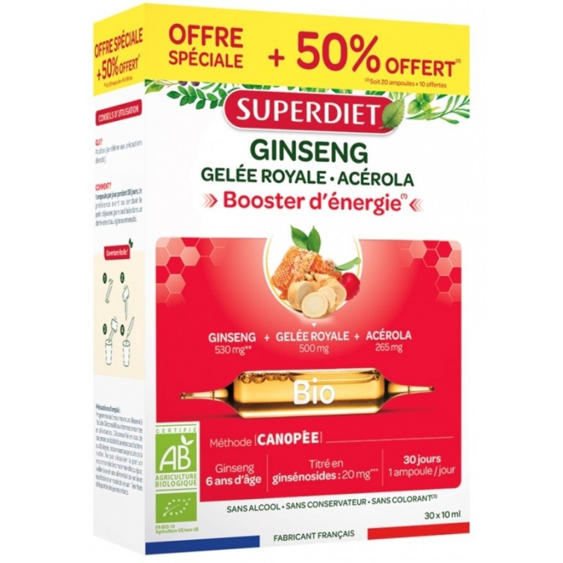 SUPERDIET GINSENG PANAX GELÉE ROYALE ACÉROLA BIO 30 AMPOULES