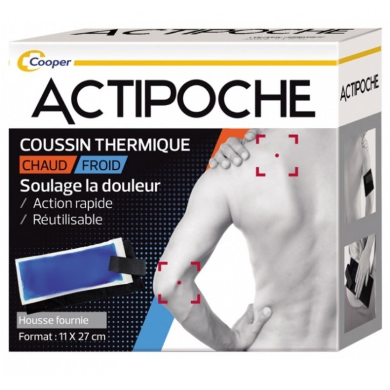 Actipoche Chaud Froid 11 x 27 cm est un coussin thermique de froid ou de chaud, réutilisable, destiné à être appliqué sur les régions du corps souffrant de douleurs d'origine rhumatismale, traumatique ou inflammatoire.