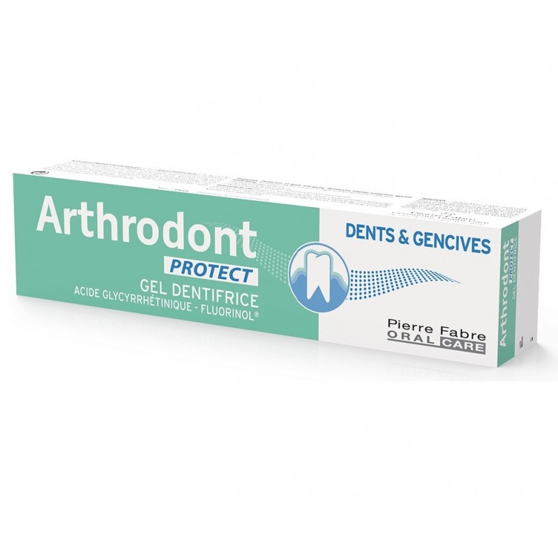 Arthrodont Protect Gel Dentifrice 75 ml. Grâce à ses deux composants hautement techniques, le Gel Arthrodont Protect permet une protection renforcée des gencives et des dents fragiles. D'une part, le fluorinol (composant issu de la Recherche Pierre Fabre) contribue à reminéraliser l'émail dentaire et à le protéger (5 fois plus de fluor fixé dès la première minute de brossage qu'un fluor minéral classique). D'autre part, l'enoxolone, permet de décongestionner, d'apaiser et de renforcer les gencives fragilisées. Choisir Arthorodont Protect au quotidien, c'est choisir la protection rapprochée de vos gencives et de vos dents.