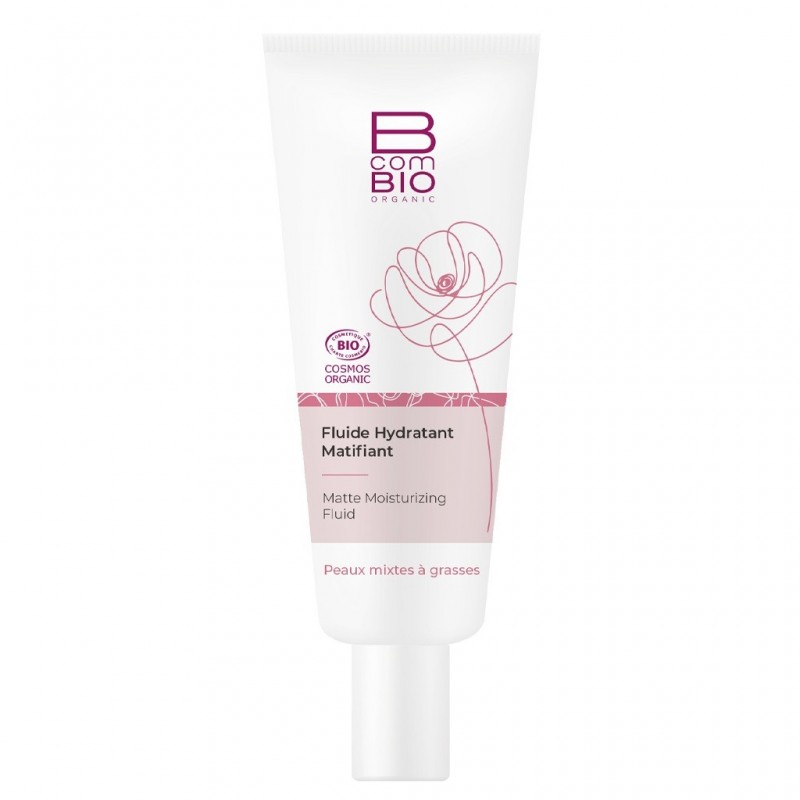 BcomBIO Fluide Hydratant Matifiant Bio 50 ml purifie et hydrate intensément et durablement les peaux mixtes à grasses. Sa texture fraîche et légère au fini poudré matifie la peau tout en lissant les irrégularités cutanées pour un effet «blur» immédiat. Jour après jour, la peau est rééquilibrée, le grain de peau est affiné.