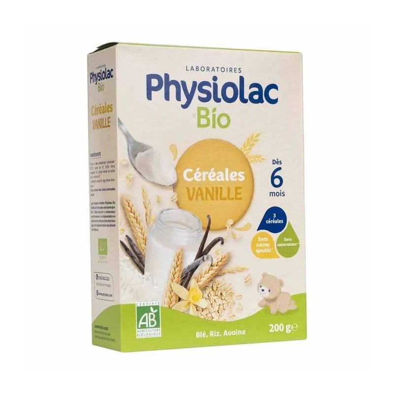 Physiolac Bio Céréales Vanille Dès 6 Mois 200 g est une préparation à base de blé, riz et avoine avec de l'arôme naturel de vanille pour nourrissons à partir de 6 mois et enfants en bas âge, à reconstituer avec du lait infantile ou du lait maternel. Ces céréales infantiles sont les premiers éléments de la diversification alimentaire, élaborés pour une adaptation progressive vers une alimentation variée. Elles sont instantanées et ne nécessitent pas de cuisson.