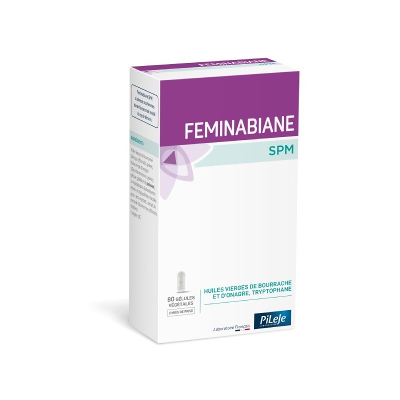 Pileje Feminabiane SPM 80 Gélules est un complément alimentaire à base d'huiles de bourrache, d'onagre et de tryptophane. La bourrache est une plante originaire de Syrie, aujourd'hui cultivée en Europe méridionale et centrale. L'onagre est une plante herbacée originaire d'Amérique du Nord. Les graines d'onagre et de bourrache contiennent de l'acide gamma-linolénique (GLA), un acide gras de la famille des oméga 6. 4 gélules permettent d'apporter 200 mg de GLA. Feminabiane SPM est également composé de tryptophane.