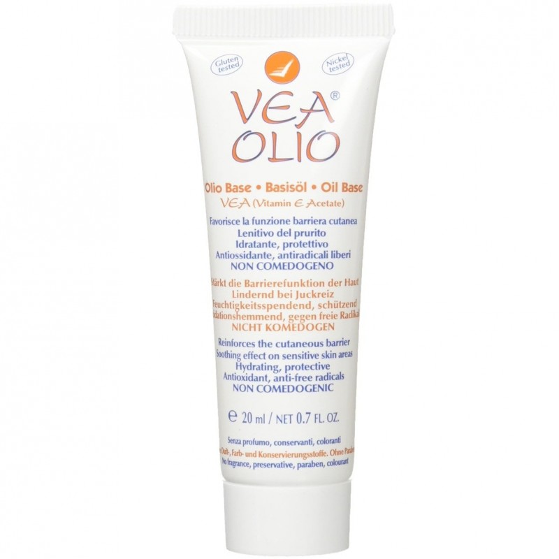 VEA Olio 20 ml est une huile hydratante pour soin cutané, formulée avec de la Vitamine E pure, à action cicatrisante, antiinflammatoire, antiradicalaire et protectrice, permettant de favoriser la cicatrisation et la microcirculation cutanée, de protéger et de soulager les irritations de la peau et des muqueuses, de réhydrater les couches supérieures de l'épiderme, tout en protégeant la peau des agressions extérieures.