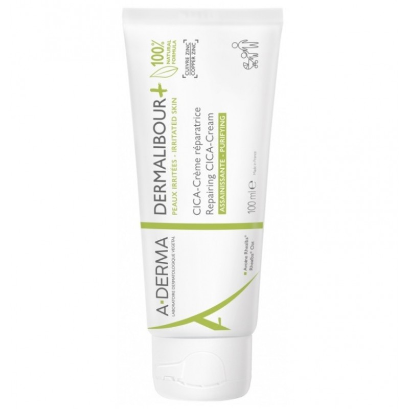 Aderma Dermalibour+ CICA-Crème Réparatrice Assainissante 100 ml, efficace dès 24h et 100 % d'origine naturelle, assainit, répare et apaise immédiatement les peaux irritées de toute la famille. Dermalibour+ CICA-Crème Réparatrice Assainissante vient au secours des peaux irritées de toute la famille dès la naissance. Sa formule haute tolérance est parfaitement adaptée aux peaux irritées du visage, du corps, des paupières et des zones intimes externes des nouveau-nés, enfants et adultes. Elle assainit, répare dès 24h et apaise immédiatement, toutes les zones irritées qui rougissent, piquent ou tiraillent, y compris les irritations du mamelon liées à l’allaitement. Sa formule 100% d'origine naturelle contient seulement 14 ingrédients essentiels, dont l’extrait apaisant, réparateur et anti-irritant de Plantules d’avoine Rhealba et le complexe de cuivre-zinc, qui limite le risque de prolifération bactérienne. Sa texture agréable, rémanente et invisible est facile à appliquer et absorbée rapidement par la peau, ne laissant pas de traces blanches. Elle ne contient pas d’huile minérale ni de parfum.