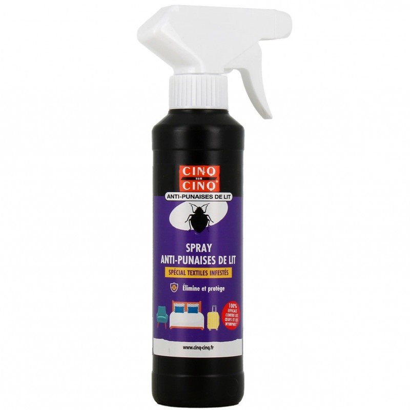 Cinq Sur Cinq Anti-Punaises de Lit Spray 250 ml protège le linge de maison contre une infestation de punaises de lit mais aussi pour traite les textiles déjà infestés par ces parasites.
