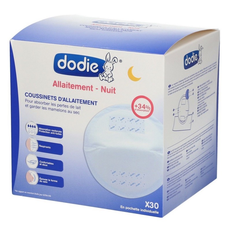 Dodie Allaitement Coussinets d'Allaitement Nuit x 30 ont été conçus pour absorber efficacement les écoulements de lait entre deux tétées de nuit. Ils sont conservés en pochette individuelle pour une hygiène parfaite.