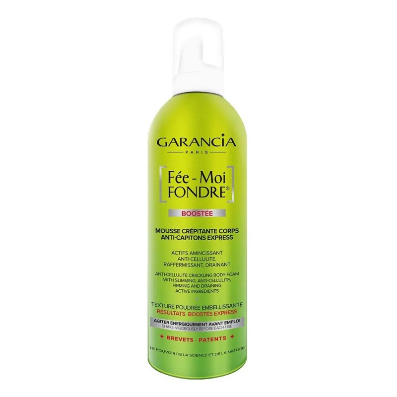 Garancia Fée-Moi Fondre Boostée Mousse Crépitante Corps Anti-Capitons Express 400 ml est un soin minceur aux actifs multi-actions : amincissant + anti-cellulite + raffermissant + drainant. Il mime l’effet remodelant d'une séance de sport.