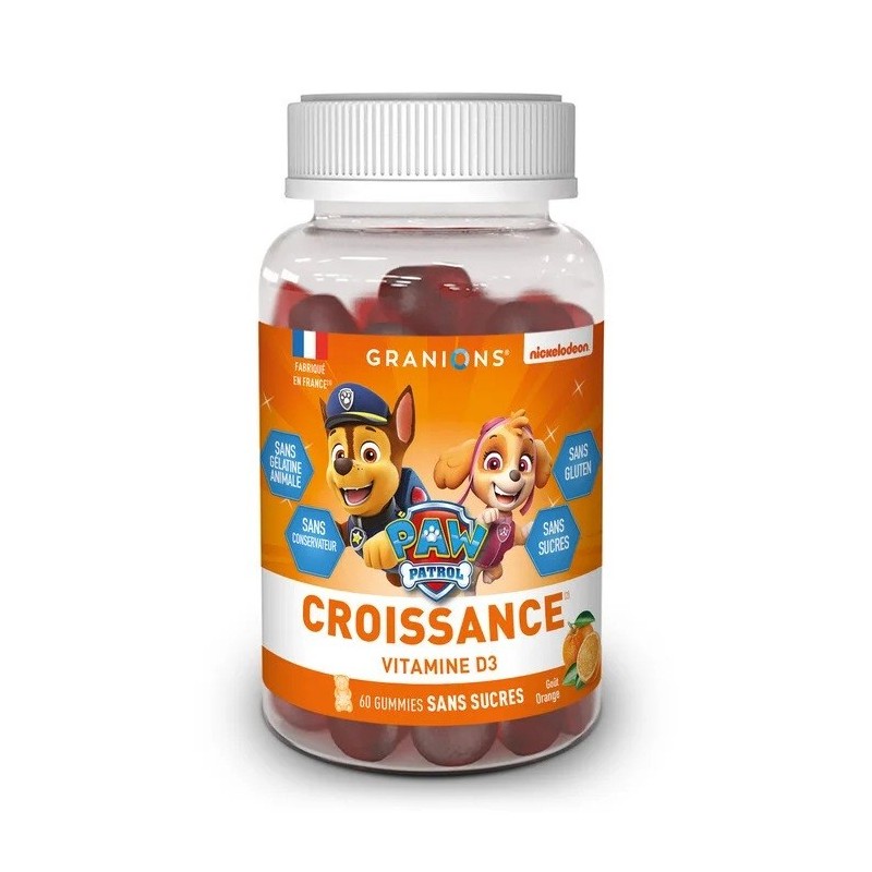 Granions Pat Patrouille Croissance 60 Gummies favorise la croissance au bon goût d'orange, une délicieuse manière de soutenir le développement de vos enfants. Ces compléments alimentaires sous forme de gommes renferment un concentré de vitamines essentielles dont :