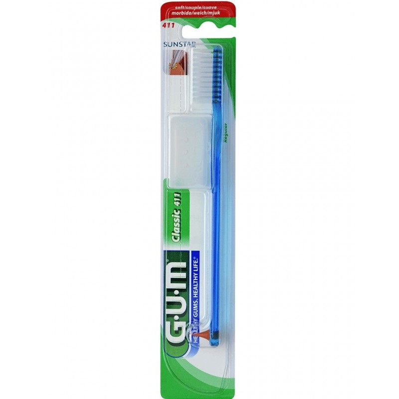 Gum Classic Brosse à Dents Souple 4 Rangs Grande Tête 411 élimine efficacement la plaque dentaire.