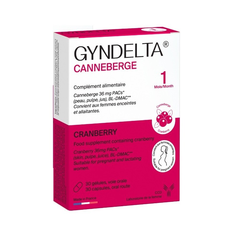 Gyndelta 30 Gélules est un complément alimentaire à base de canneberge 100% naturelle.