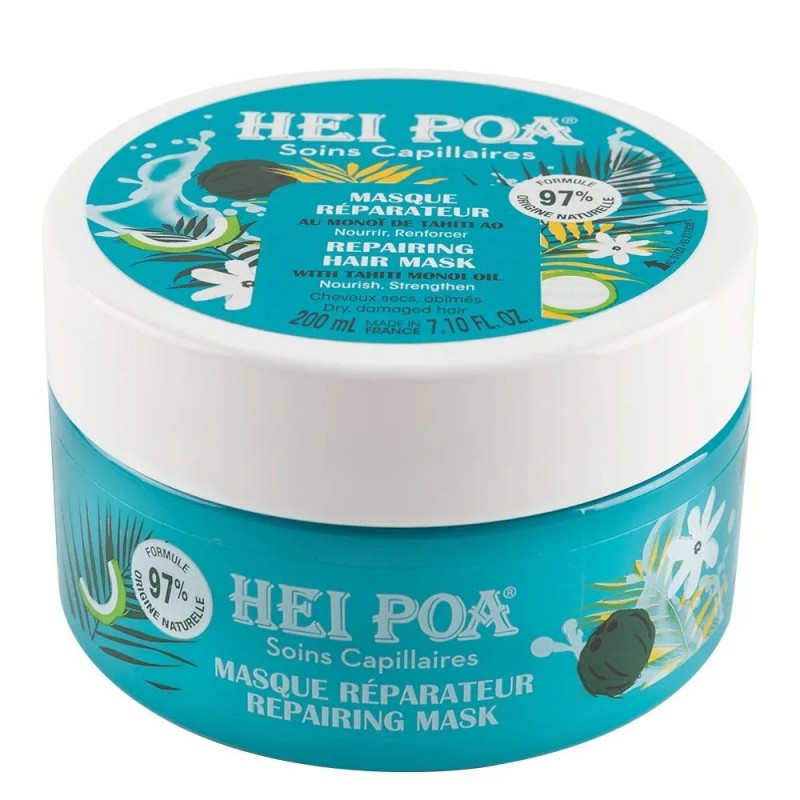 Hei Poa Masque Réparateur 200 ml a été spécialement formulée pour nourrir et réparer les cheveux desséchés, abîmés et cassants. Il est le soin indispensable à vos cheveux pour les réparer et les protéger intensément lorsque ces derniers sont abîmés. Sa texture riche et fondante est formulée à base de Monoï de Tahiti AO, cette huile ancestrale issue de Polynésie est le soin par excellence pour leurs chevelures.
