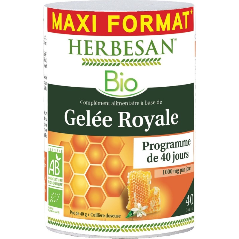 Herbesan Gelée Royale Bio 40 g apporte quotidiennement 1000 mg de gelée royale.