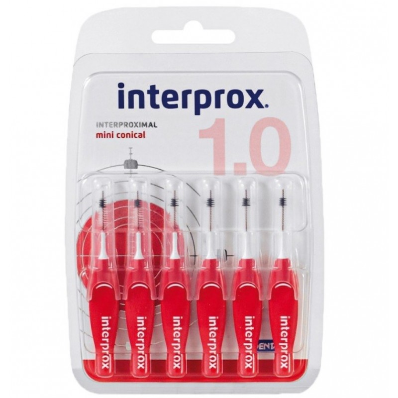 Interprox Interproximal Mini Conical 6 Brossettes Interdentaires a été conçue pour éliminer le biofilm (plaque dentaire bactérienne) des espaces interdentaires de 1 mm. Elle est recommandée en particulier pour les dents antérieures. Les dimensions de la tête cylindrique permettent d’atteindre un espace interdentaire de 1 mm minimum (PHD = 1).