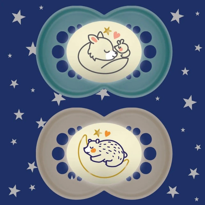 Mam Original Nuit 2 Sucettes Silicone +6 Mois est le meilleur moyen de contribuer au bon développement bucco-dentaire et est facile à retrouver dans le noir.