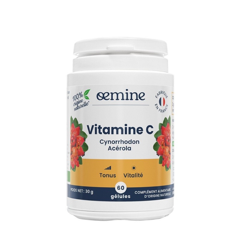 cynorrhodon, acérola. gélule végétale: polysaccharides (pullulan). Oemine C est garanti sans colorant, ni conservateur, sans ajout de produit de synthèse.
