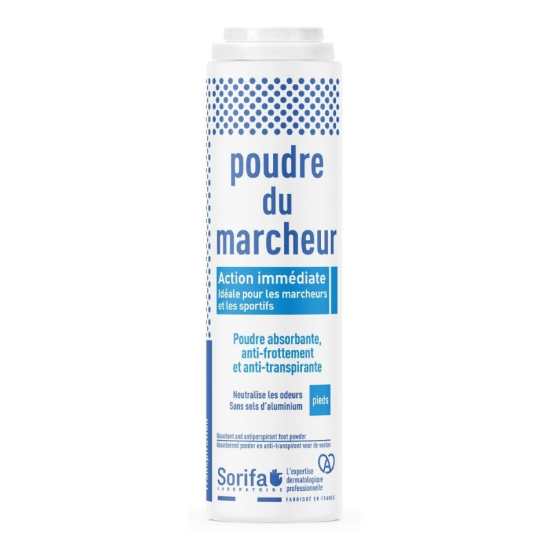 Sorifa Poudre du Marcheur 100 g est idéale pour la transpiration des pieds lors du port prolongé de chaussures pendant le travail ou la pratique de sports comme la marche, la randonnée... Par son action immédiate, la Sorifa Poudre du Marcheur procure hygiène et confort dès application.