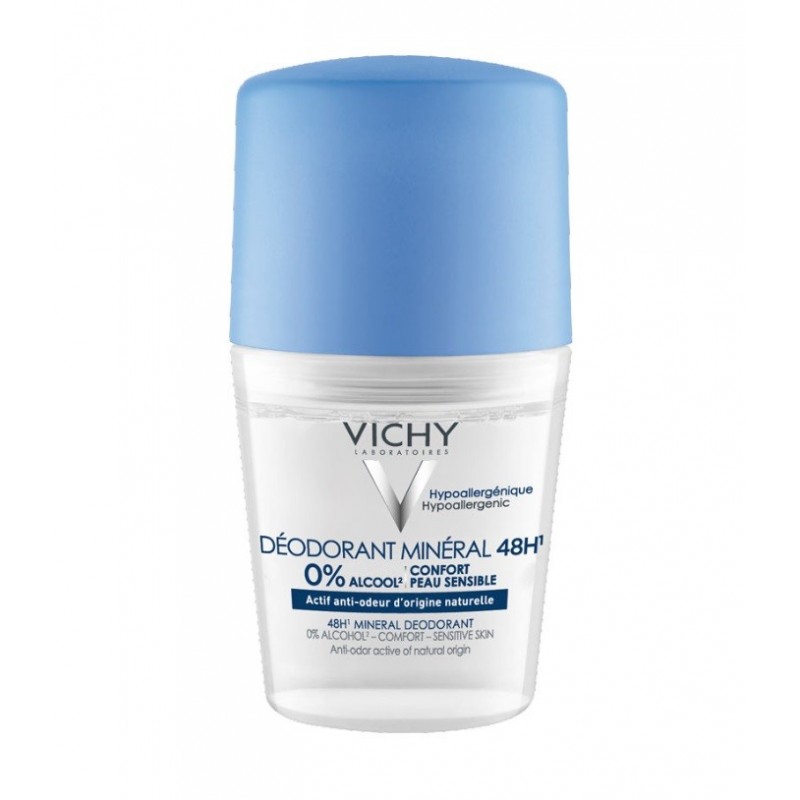 Vichy Déodorant Minéral 48H Roll-On 50 ml est un déodorant minéral sans sels d'aluminium, sans alcool, sans paraben. Pour les femmes à la recherche d'un déodorant avec un niveau d'efficacité maximal sans compromis sur la tolérance.