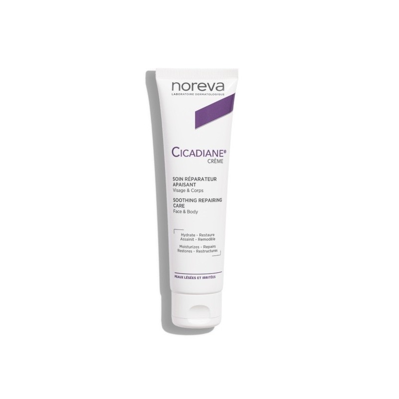 Noreva Cicadiane Crème Soin Réparateur Apaisant 40 ml permet d’assurer protection, hydratation, restauration rapide et optimale de la barrière cutanée suite à des altérations épidermiques diverses : peau lésée, irritée, sensible, post actes esthétiques, post interventions, etc. Sa texture fluide facilite l’étalement et limite les sensations d'inconfort lors de l’application.
