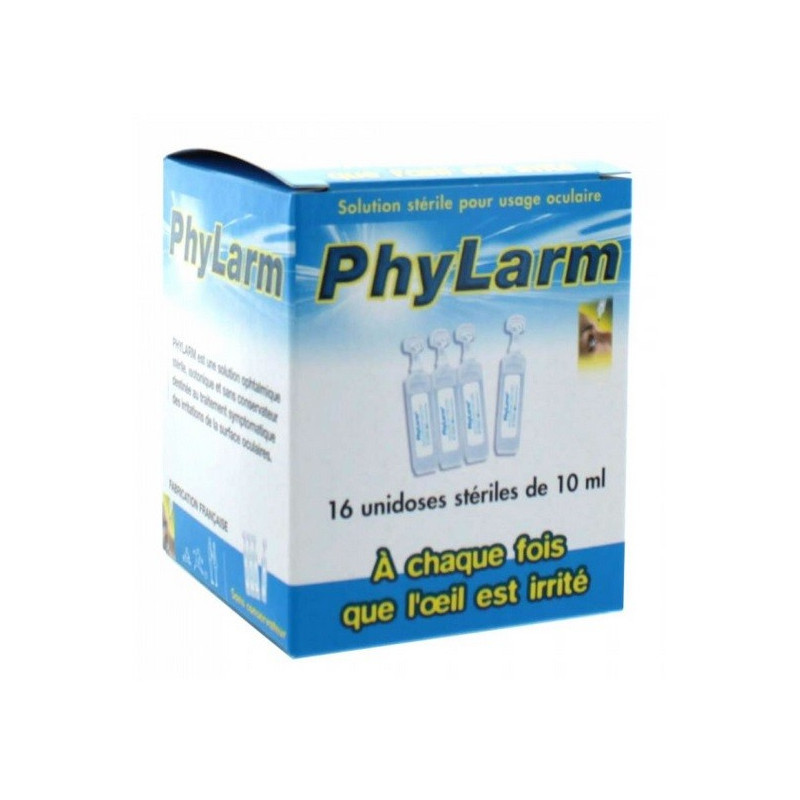 PhyLarm 16 unidoses 10 ml est une solution ophtalmique stérile pour l'irrigation de la surface oculaire.