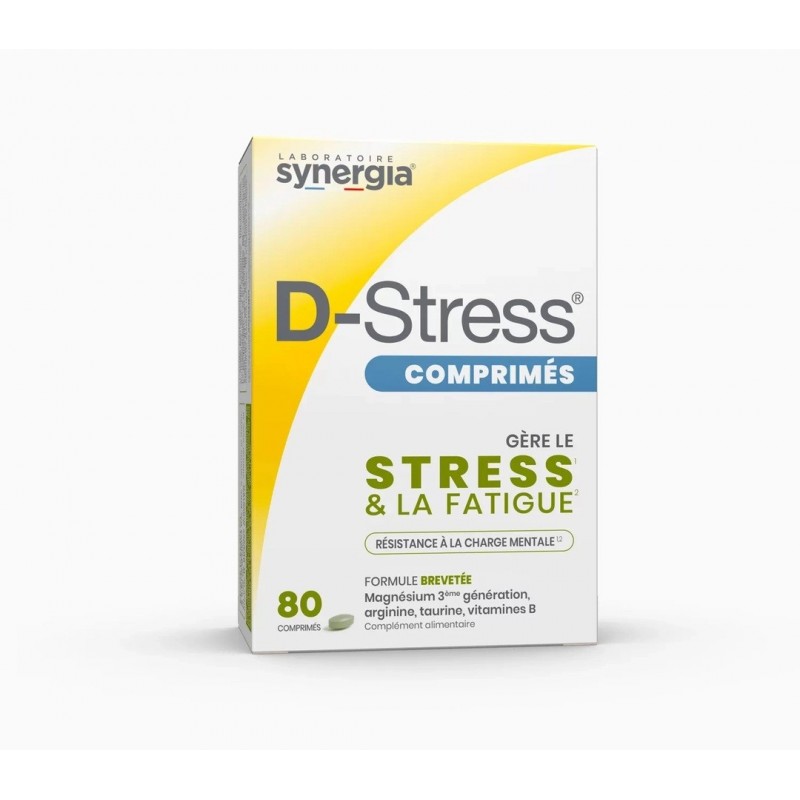La formulation de Synergia D-Stress 80 Comprimés est une véritable référence sur le marché et a fait l’objet d’un brevet international. D-Stress contient du magnésium, de la taurine, de l'arginine et des vitamines B.