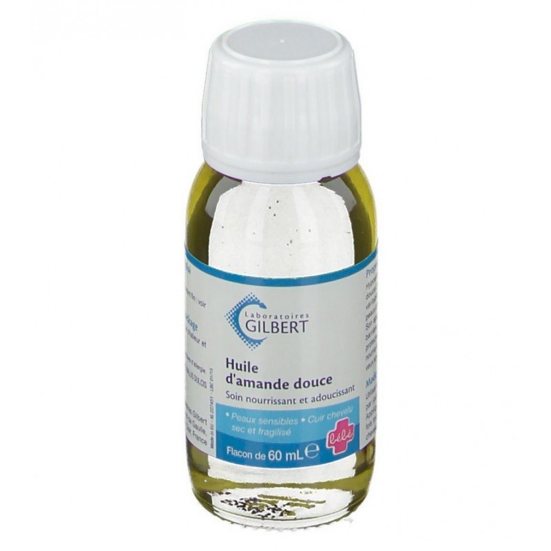 Gilbert Huile d'Amande Douce 60 ml est 100% naturelle. Elle est extraite du fruit de l'amandier par pression. Sur la peau, l'huile d'amande douce soulage les irritations mineures et nourrit la peau. Elle peut s'utiliser seule en massage pour détendre votre bébé. L'Huile d'Amande douce est un véritable produit de soin pour les peaux sèches et sensibles. Hypoallergénique, sans paraben, sans parfum, sans conservateur.