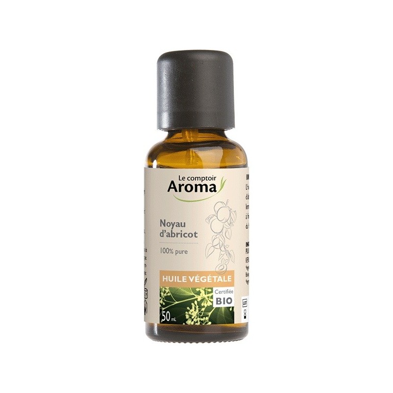 Le Comptoir Aroma Huile Végétale Noyau d'Abricot Bio 50 ml pour les soins du visage et du corps. Les huiles végétales sont de formidables vecteurs des propriétés des huiles essentielles : elles permettent une parfaite dilution et une répartition uniforme lors de l’application cutanée. Elle est exceptionnellement riche en acides gras essentiels omega 6.