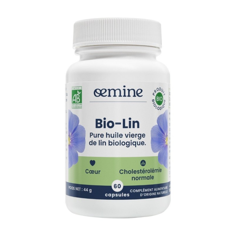 Oemine Bio-Lin 60 Capsules est un complément alimentaire naturel riche en huile de lin. L’huile de lin se caractérise par sa richesse en oméga-3 végétaux. Chaque capsule contient aussi de la vitamine E naturelle destinée à protéger cette huile très fragile de l’oxydation.