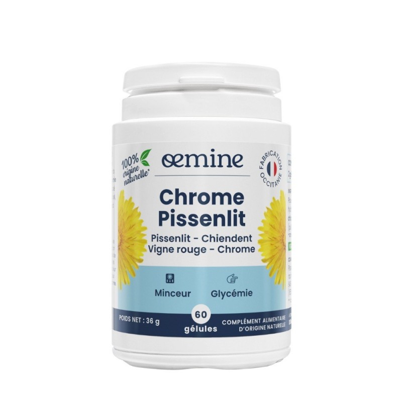Le chrome de Oemine Chrome Pissenlit participe à l’équilibre du métabolisme des glucides. Chiendent et pissenlit sont des fondants rafraîchissants.