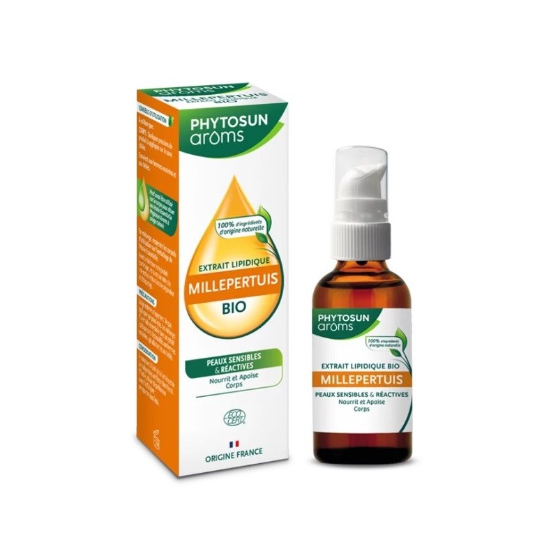 Phytosun Arôms Extrait Lipidique de Millepertuis 50 ml respecte les peaux réactives et sensibilisées et aide à les apaiser. Il apporte confort et souplesse aux peaux réactives. Extrait Lipidique 100% pur et vierge.