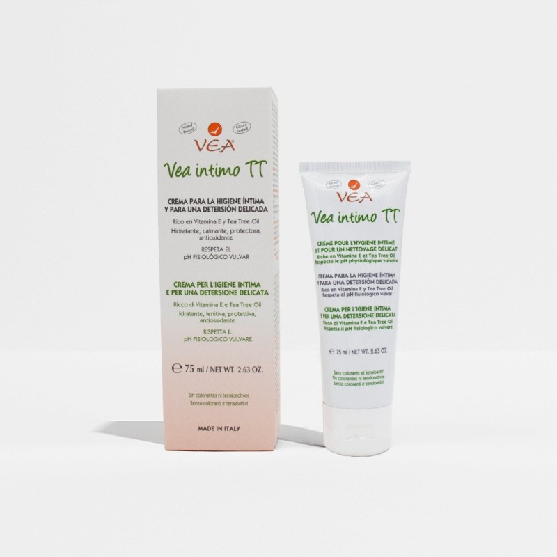 Vea Intimo TT 75 ml est une crème lavante de nouvelle génération destinée à l’hygiène intime pour un nettoyage délicat. Elle ne contient pas de tensioactif (nettoyage intime) et elle est riche en principes actifs fonctionnels. Sa composition respecte le pH physiologique naturel vulvaire, (pH5.6 – 6) afin d’ éviter toute gêne, brûlures, rougeurs, ou irritations même dues à des causes extérieures. Sa forte teneur en vitamine E et beurre de karité, a un effet hydratant, lénifiant et protecteur, permet de diminuer la sécheresse et prévenir les irritations, ou démangeaisons. L’huile essentielle de melaleucal favorise l’action antimicrobienne. Indiquée pour l’hygiène intime quotidienne et pour un nettoyage délicat, de l’enfant à la personne âgée, et en cas d’altération de la flore bactérienne vaginale due au cycle menstruel, à un accouchement, une grossesse, ou autres éléments extérieurs.