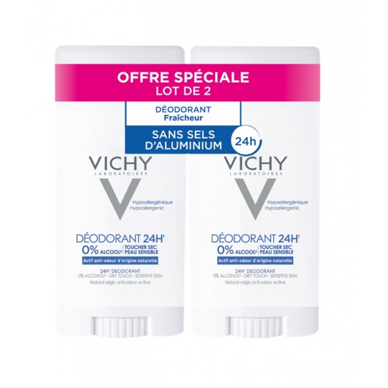 VICHY DÉODORANT 24H TOUCHER SEC PEAU SENSIBLE STICK 2 X 40 ML