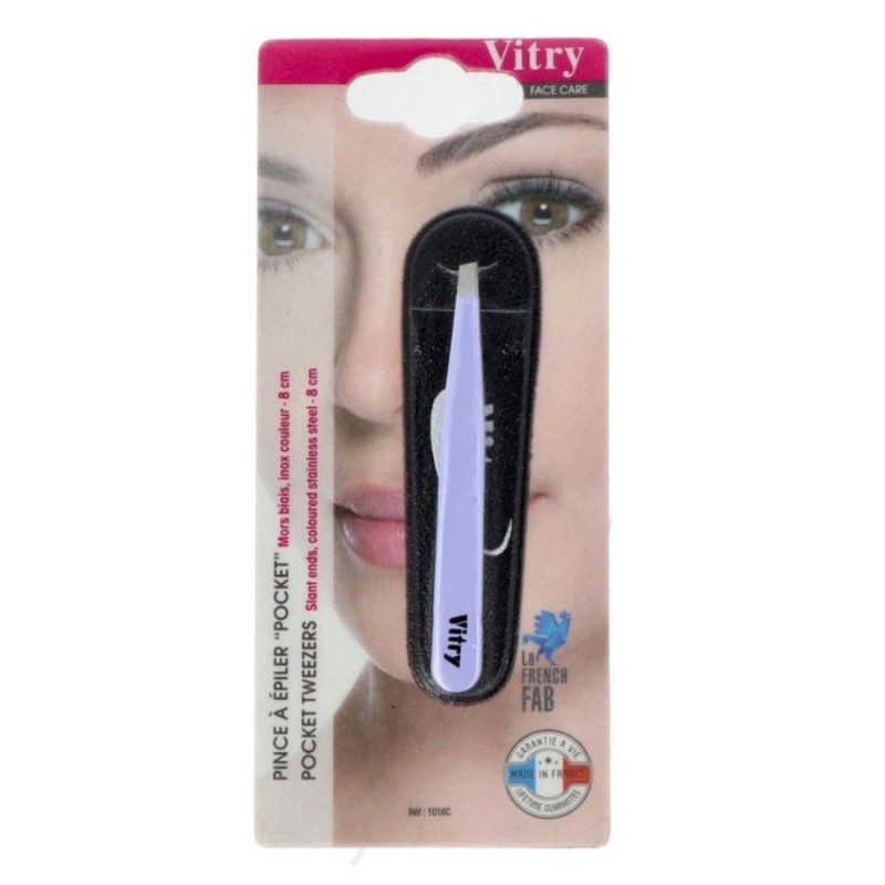 Vitry Pince à Épiler Pocket Mors Biais Couleur possède des branches larges et ses mors biseautés qui permettent une meilleure préhension des poils et un confort d’utilisation maximum. Ref 1016C